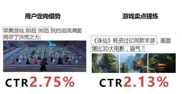 通過媒體多資源的組合投放方式幫助誅仙手游實(shí)現(xiàn)品效合一,可有效解決此類客戶的營銷問題;利用精準(zhǔn)定向技術(shù)保障了消費(fèi)基礎(chǔ)與用戶黏著度;在投放過程中,利用“創(chuàng)意搜索”功能,拓展了文案方向,實(shí)現(xiàn)了對(duì)用戶的吸引,助力KPI的達(dá)成。